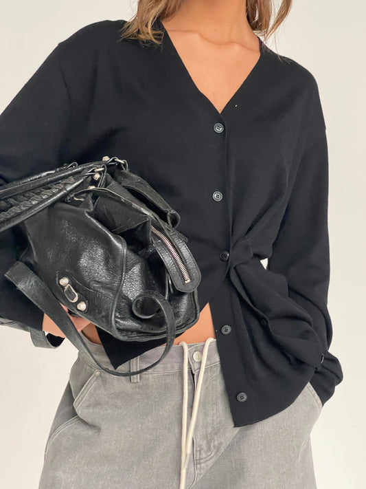 Side Buttoned Loose Cardigan Black