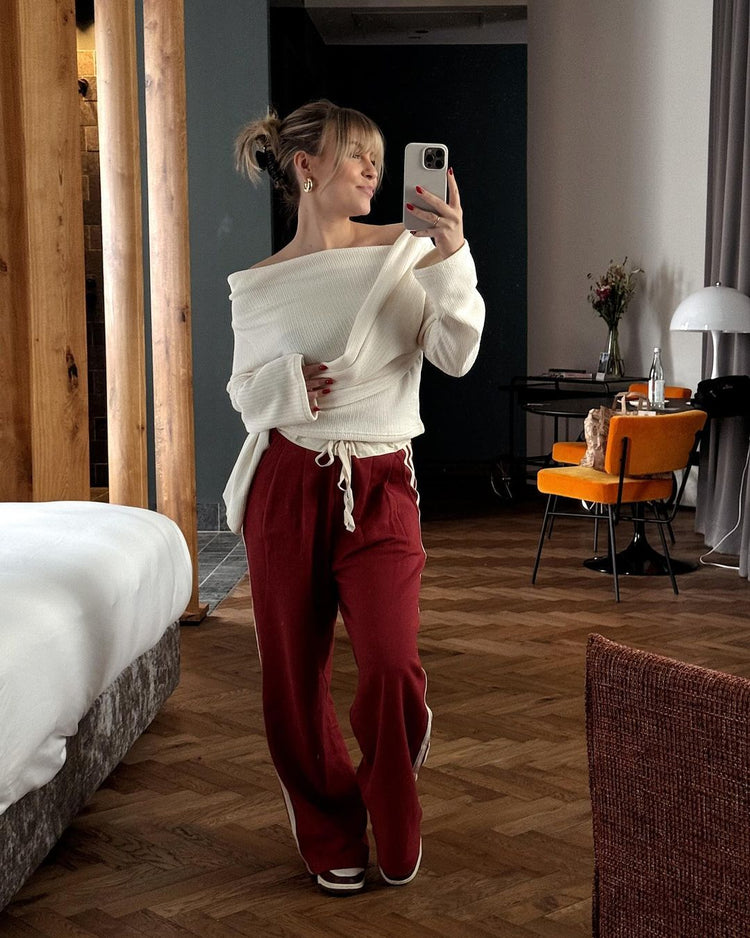 Draped Belted Top Ivory