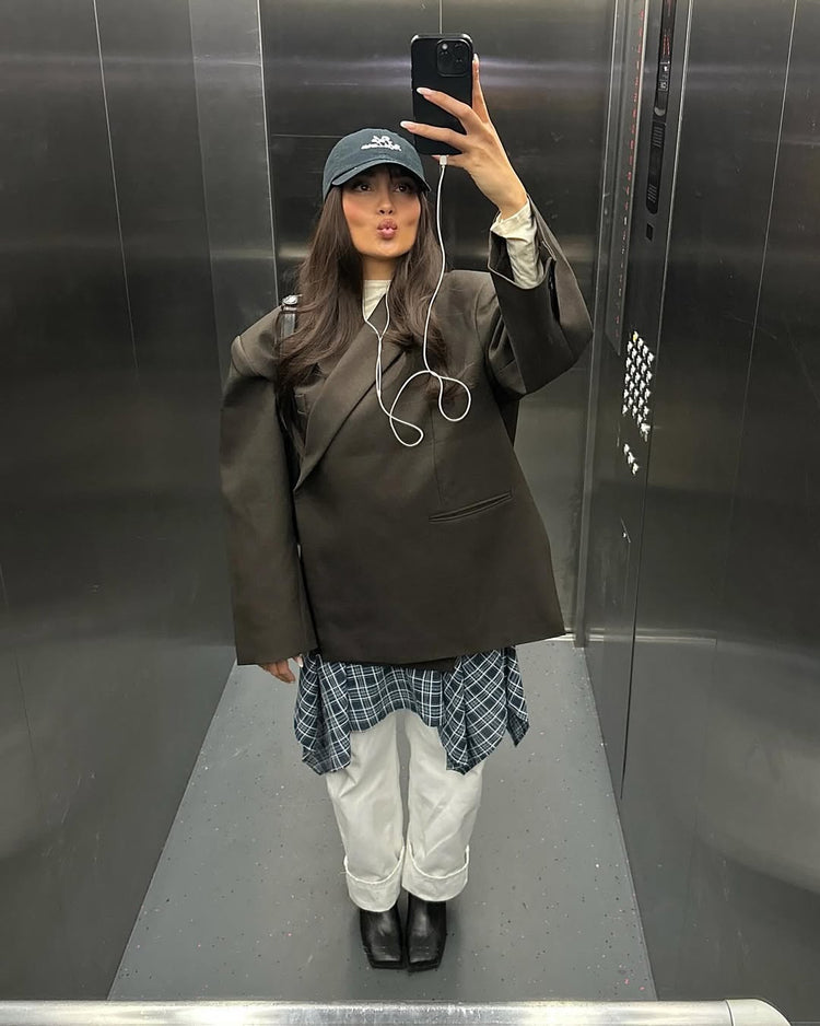 Oversized Side Slit Blazer Dark Brown