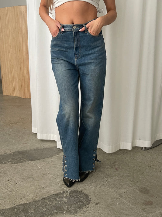Eyelet Detail Flared Jeans