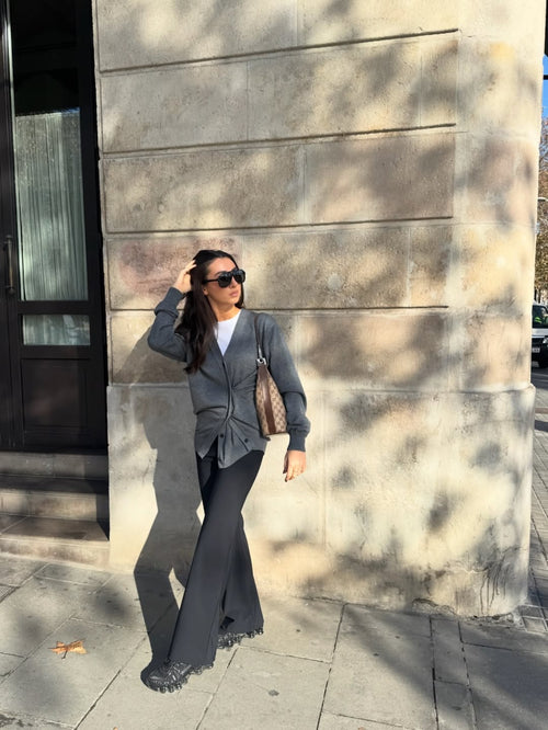 Knitted Buttoned Oversized Cardigan Khaki
