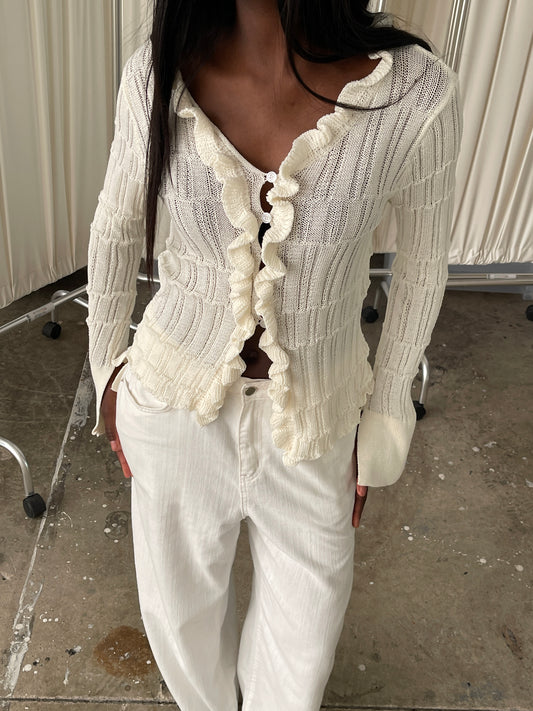 Ruffled Crochet Cardigan Ivory