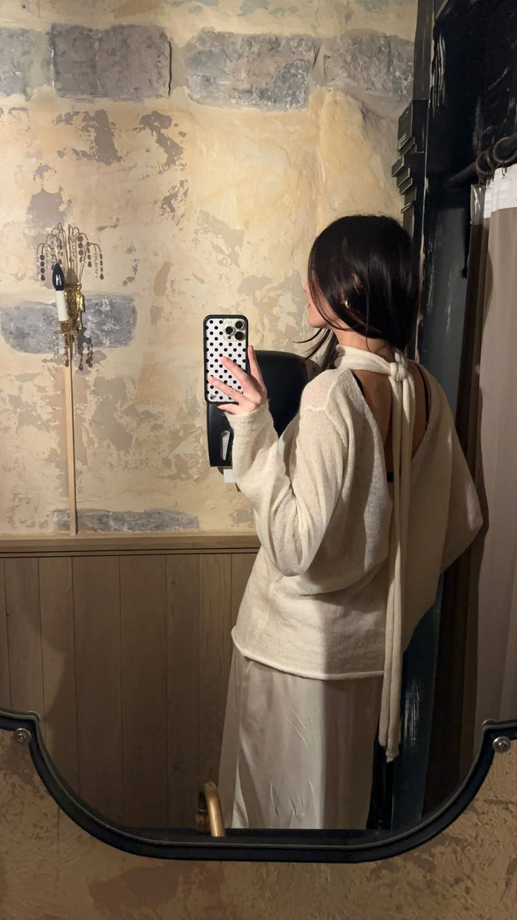 Scarf Detail Loose Knit Cream