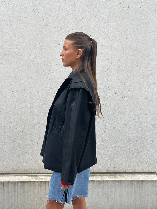 Shoulder Detail PU Jacket Black