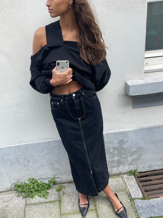 Diagonal Zipped Sweater Black