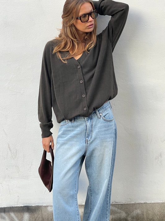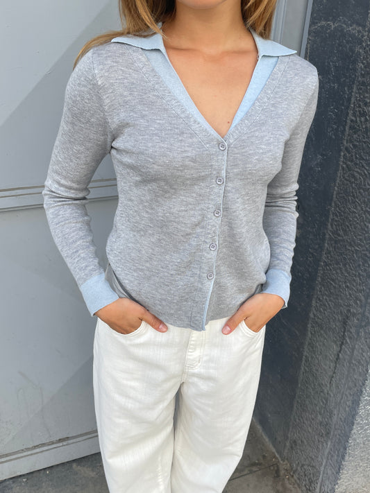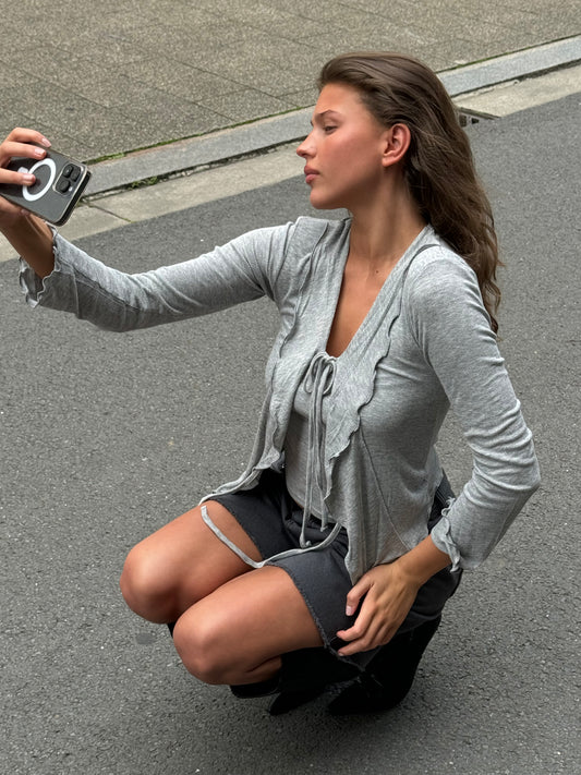 Mehrlagiges Cardigan-Oberteil mit Rüschenband Grau