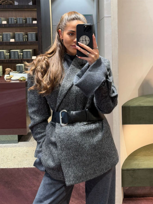 Textured Buttoned Blazer Dark Grey