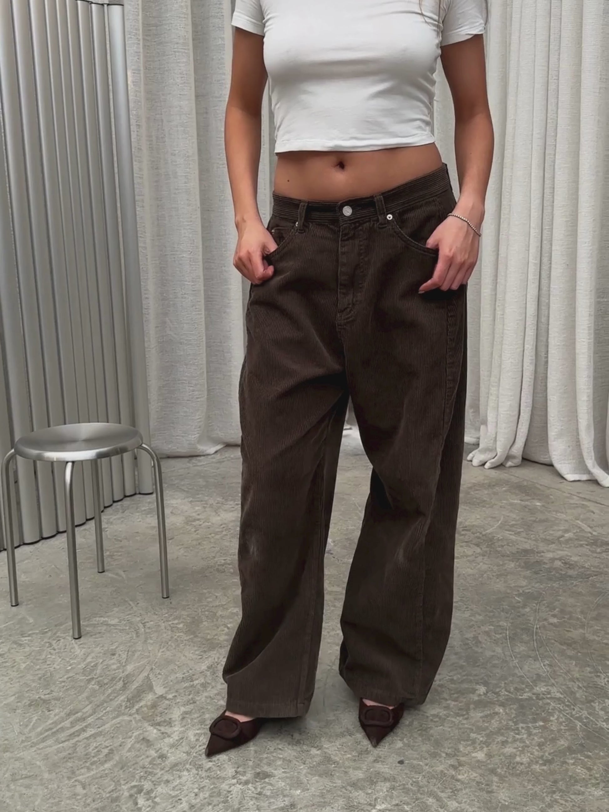 Baggy Wide Leg Corduroy Pants Khaki Brown