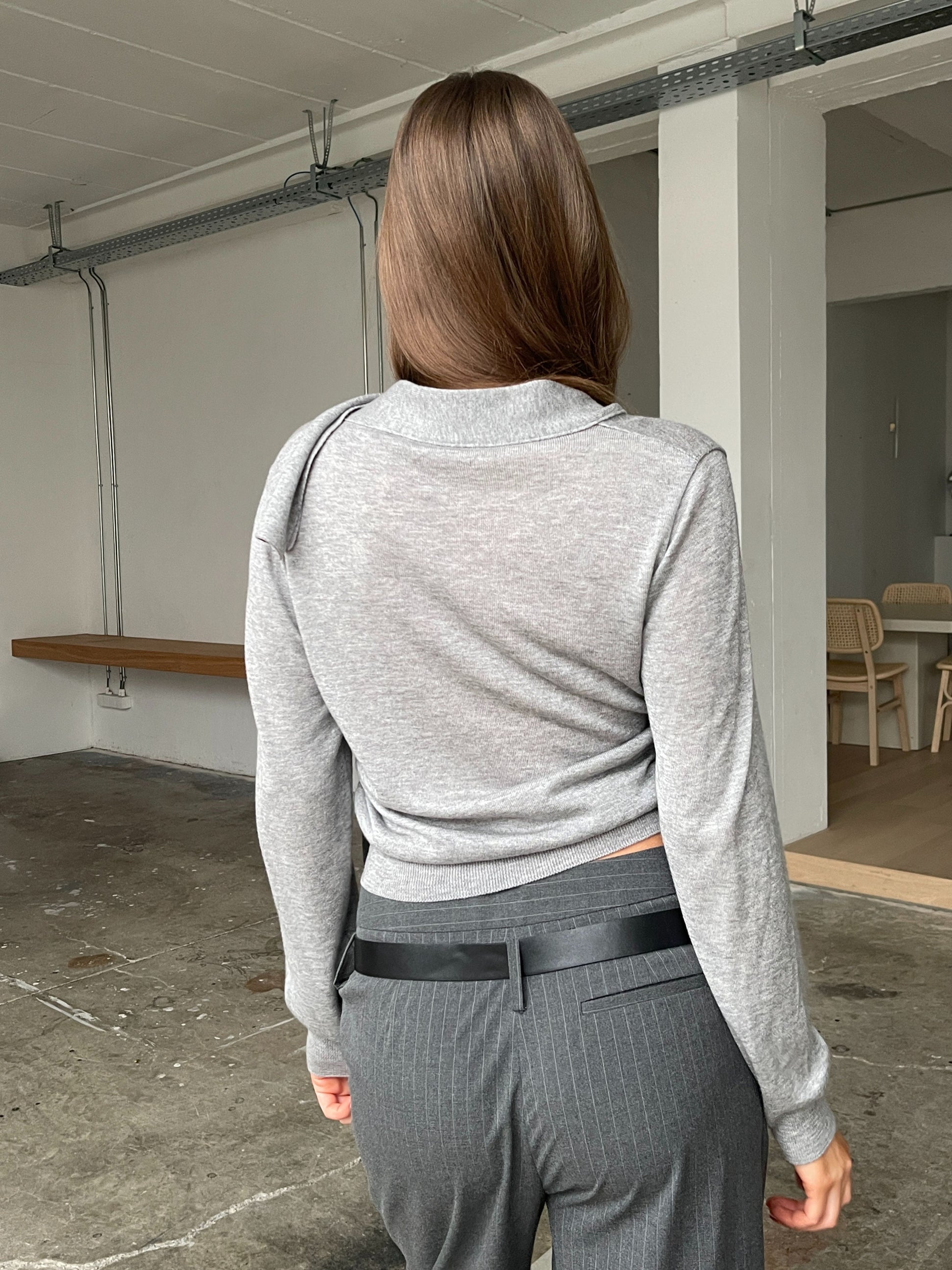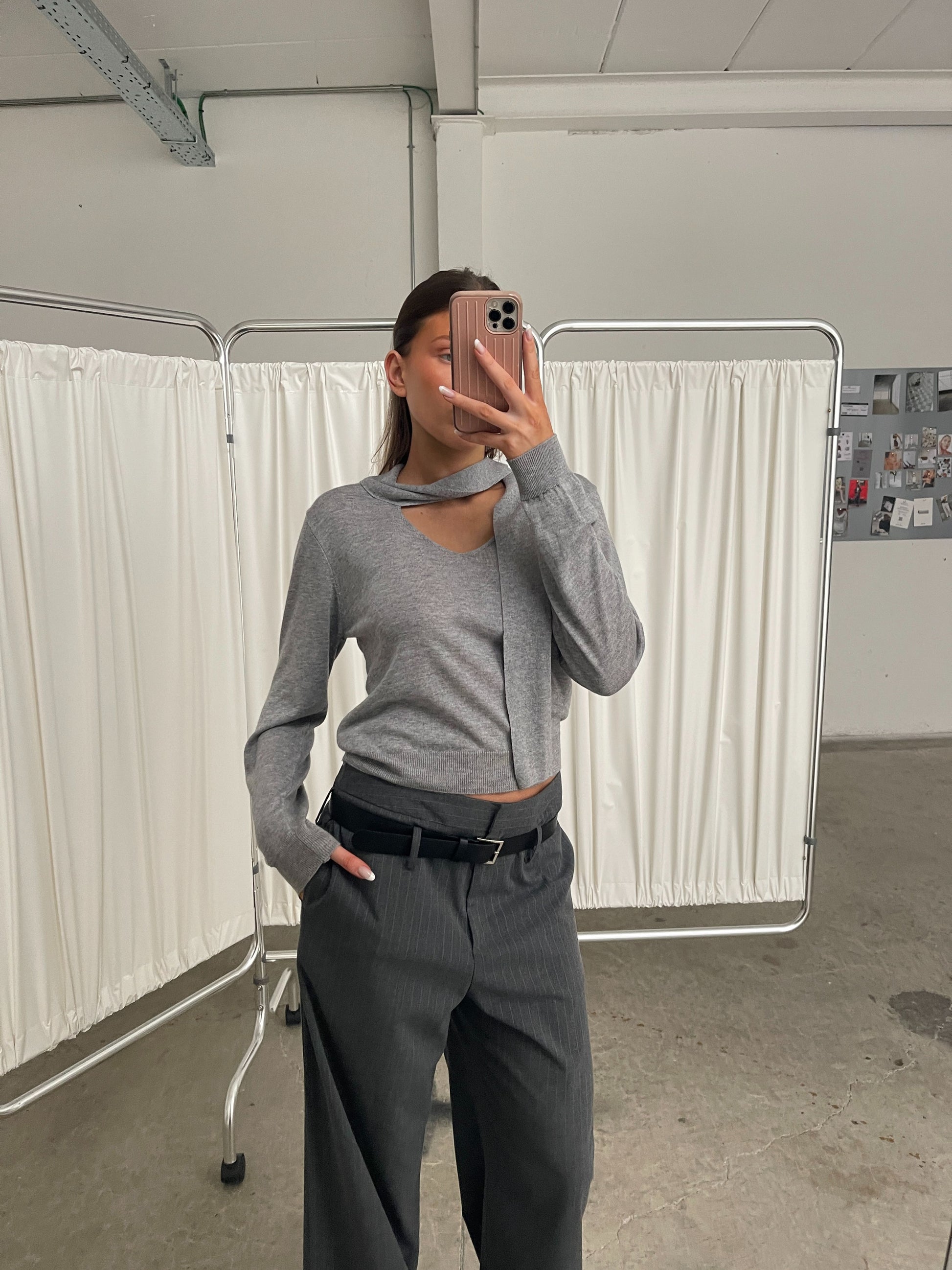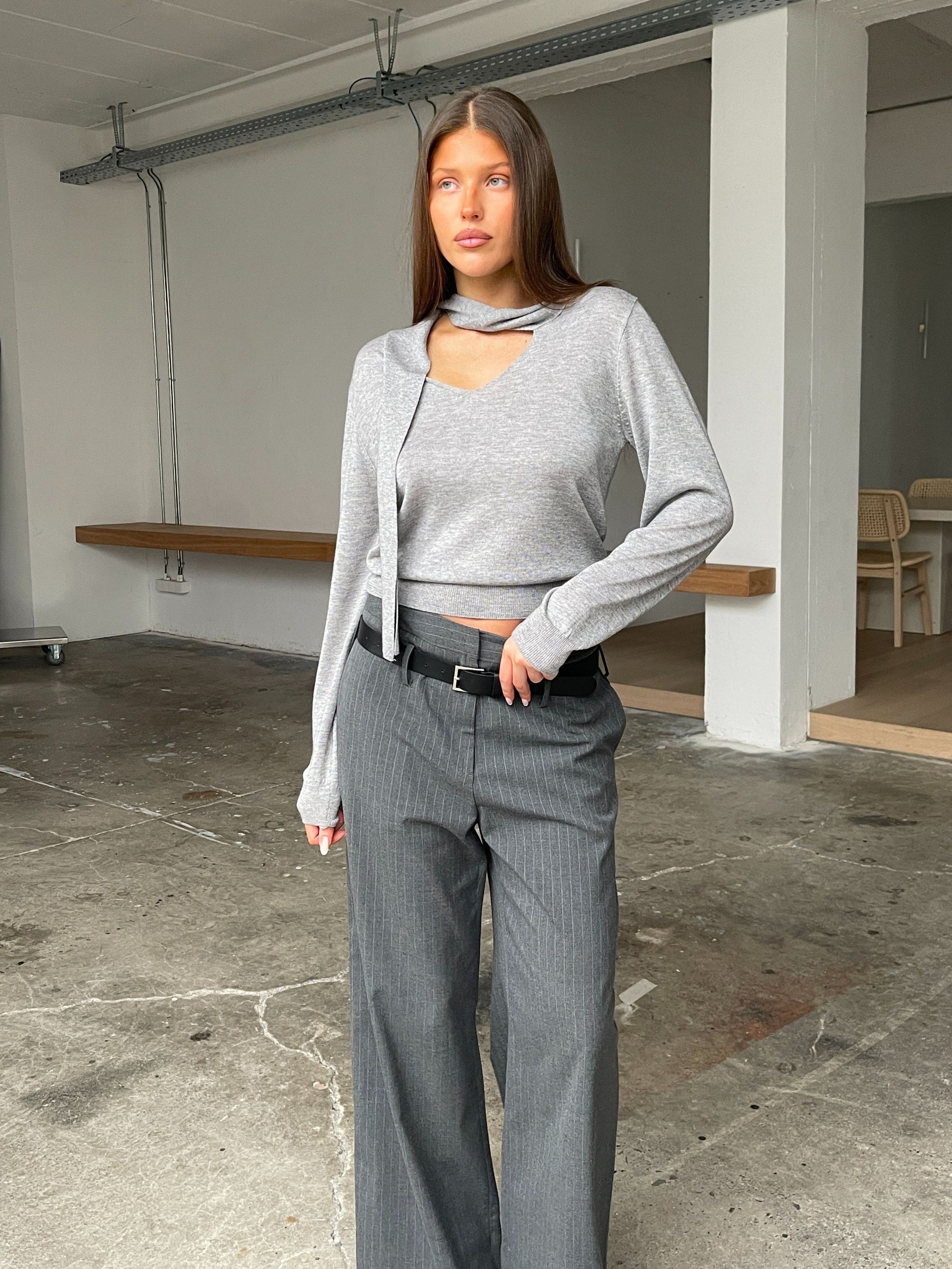 Scarf Detail Knitted Top Grey