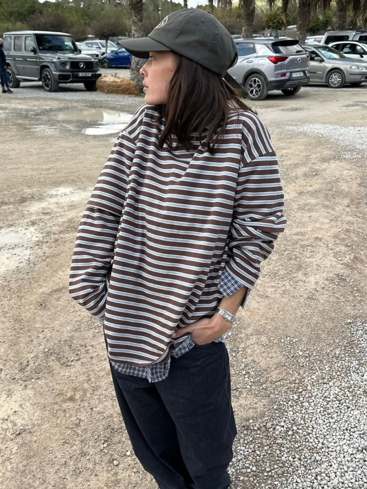 Striped Double Sleeve Tee Brown