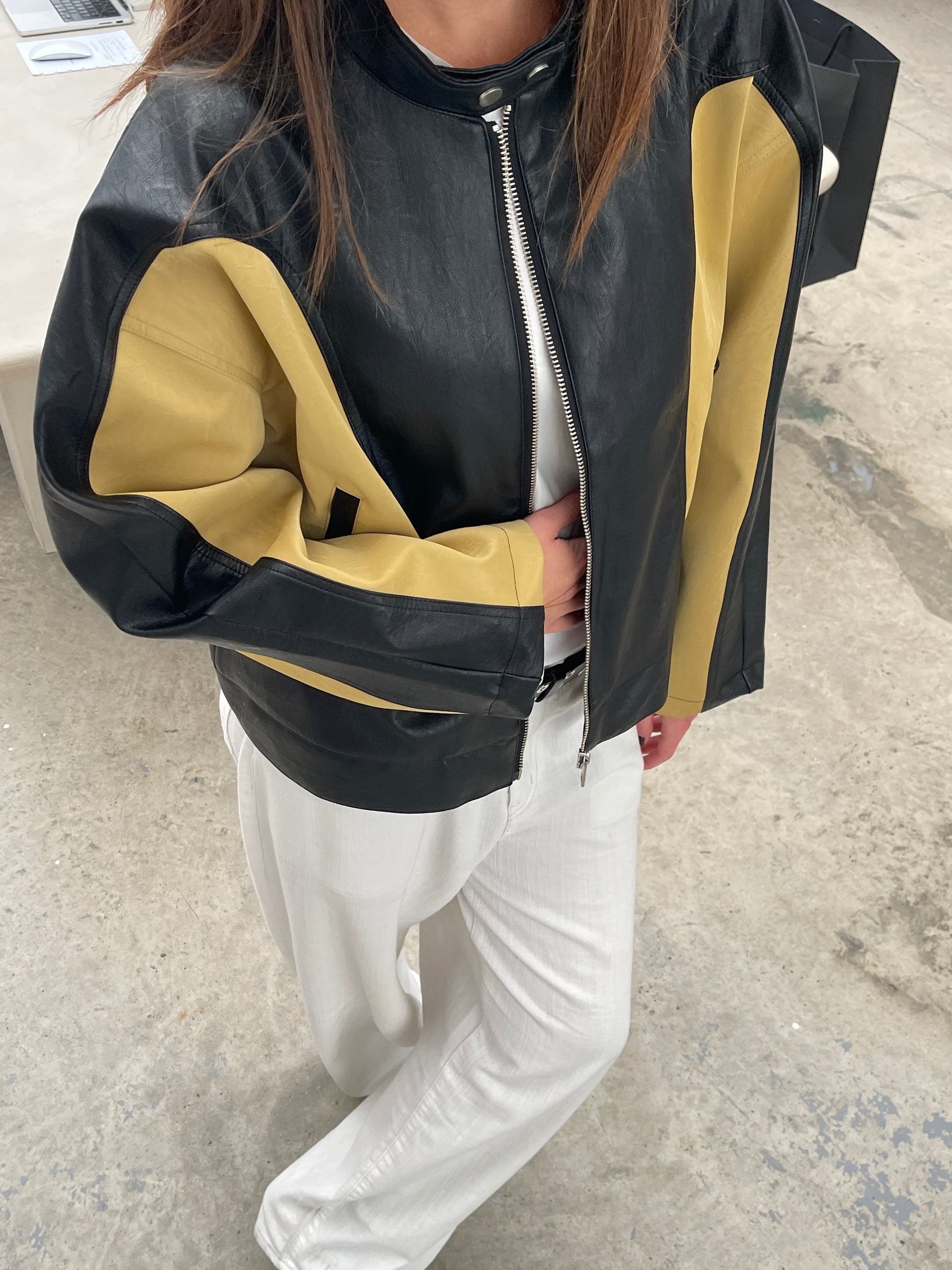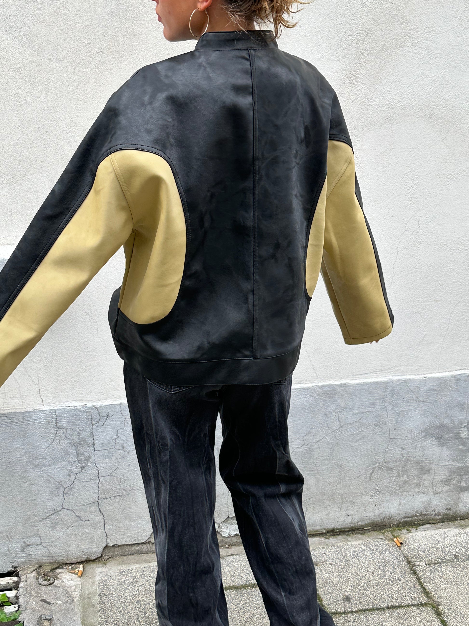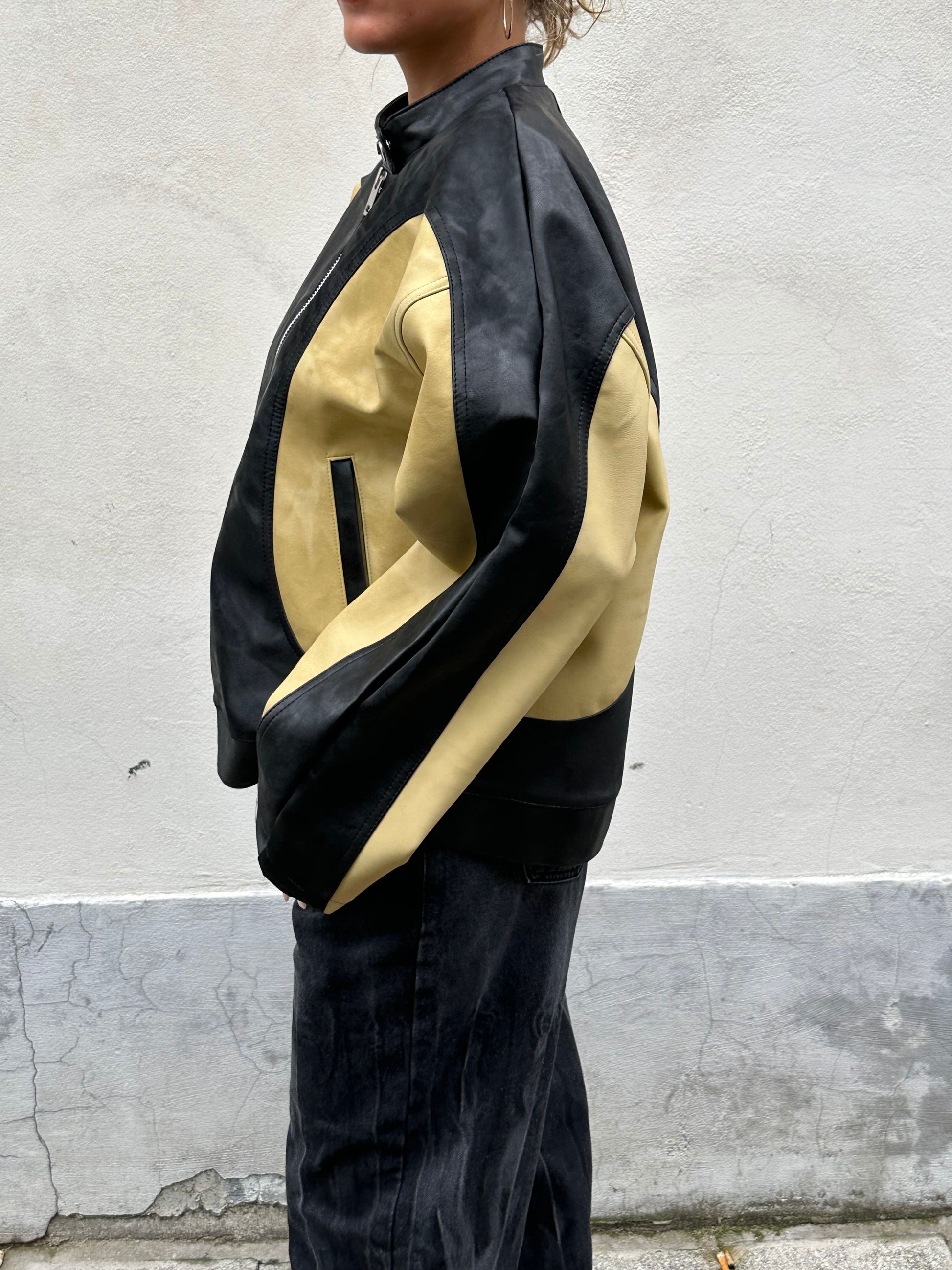 Bicolour Round Collar Jacket Camel