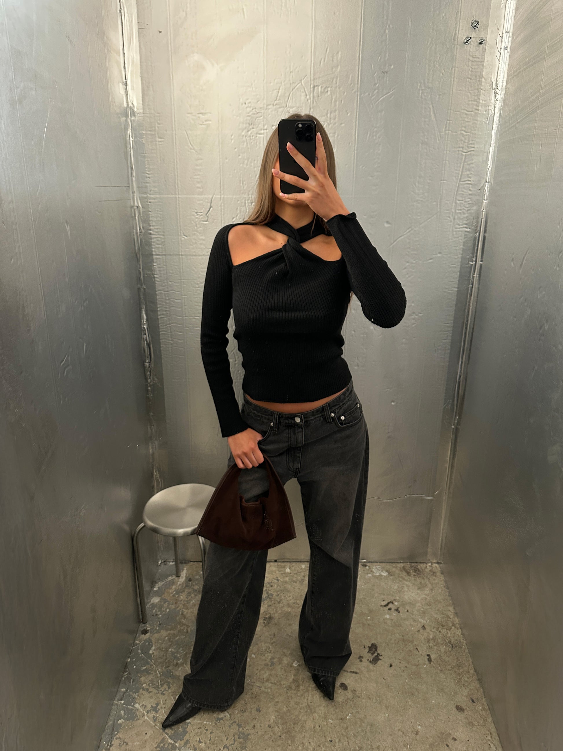 Wear it with the Mini Side Slit Lace Skirt Black or Low Rise Jeans Faded Black
