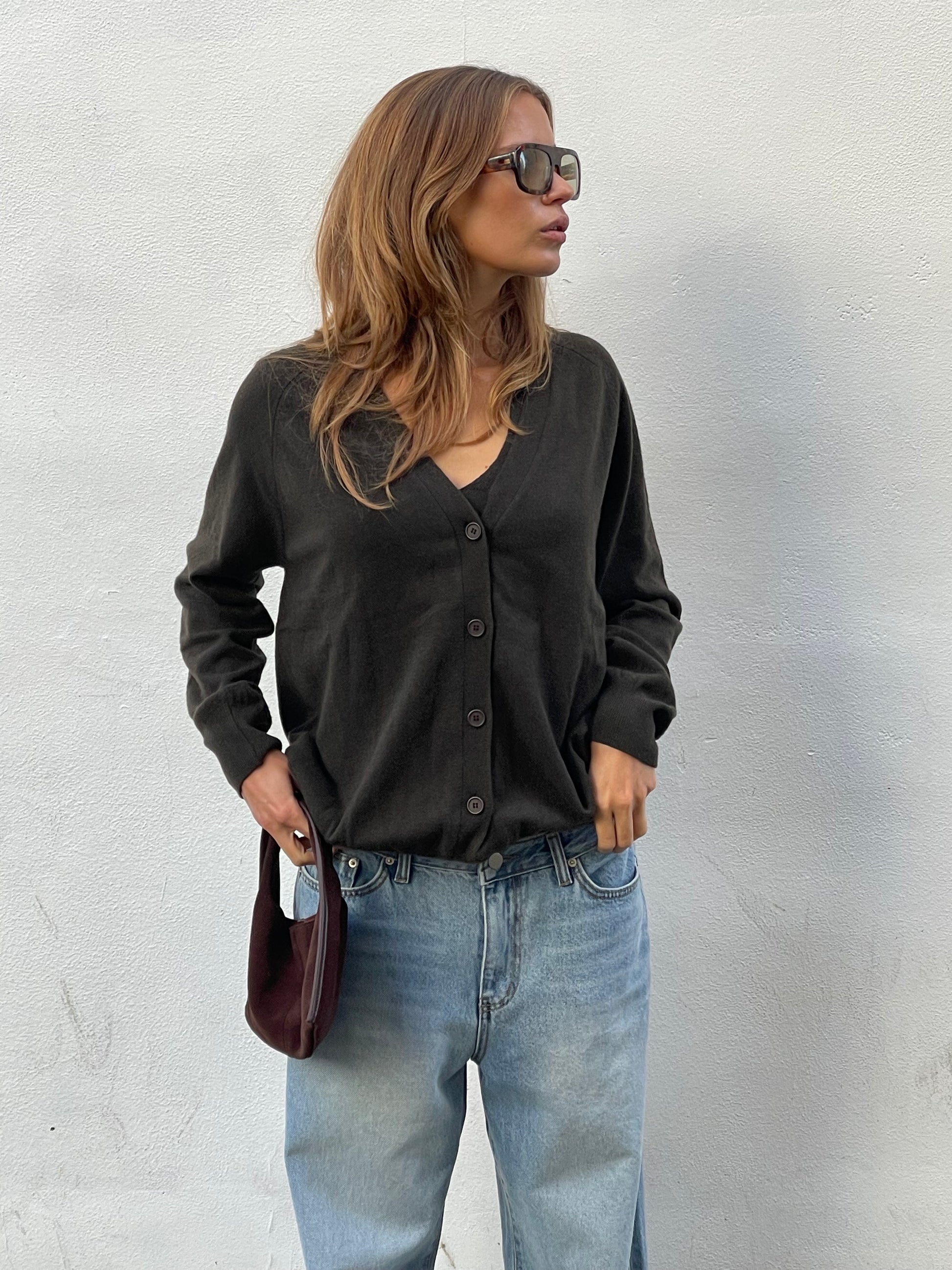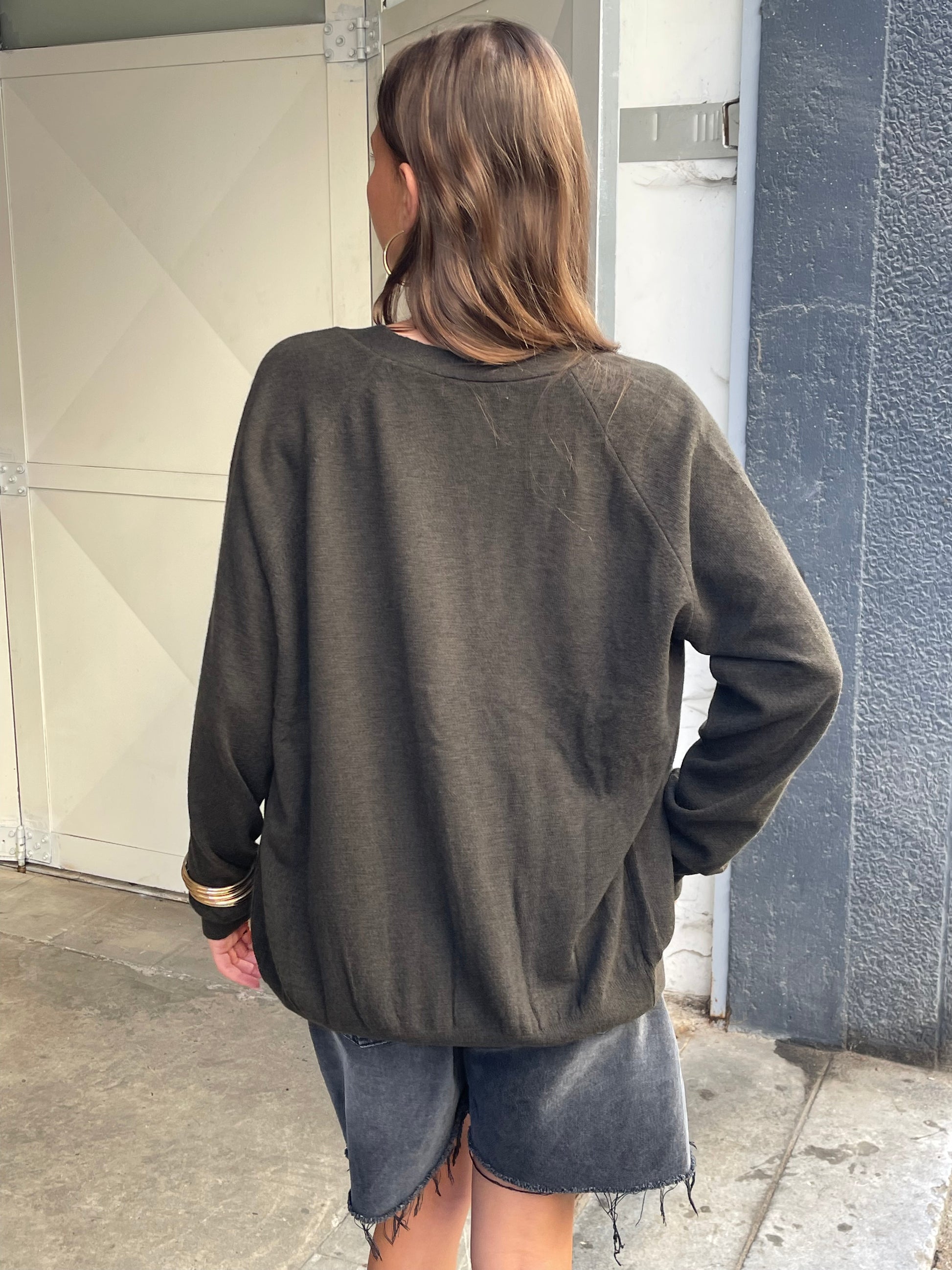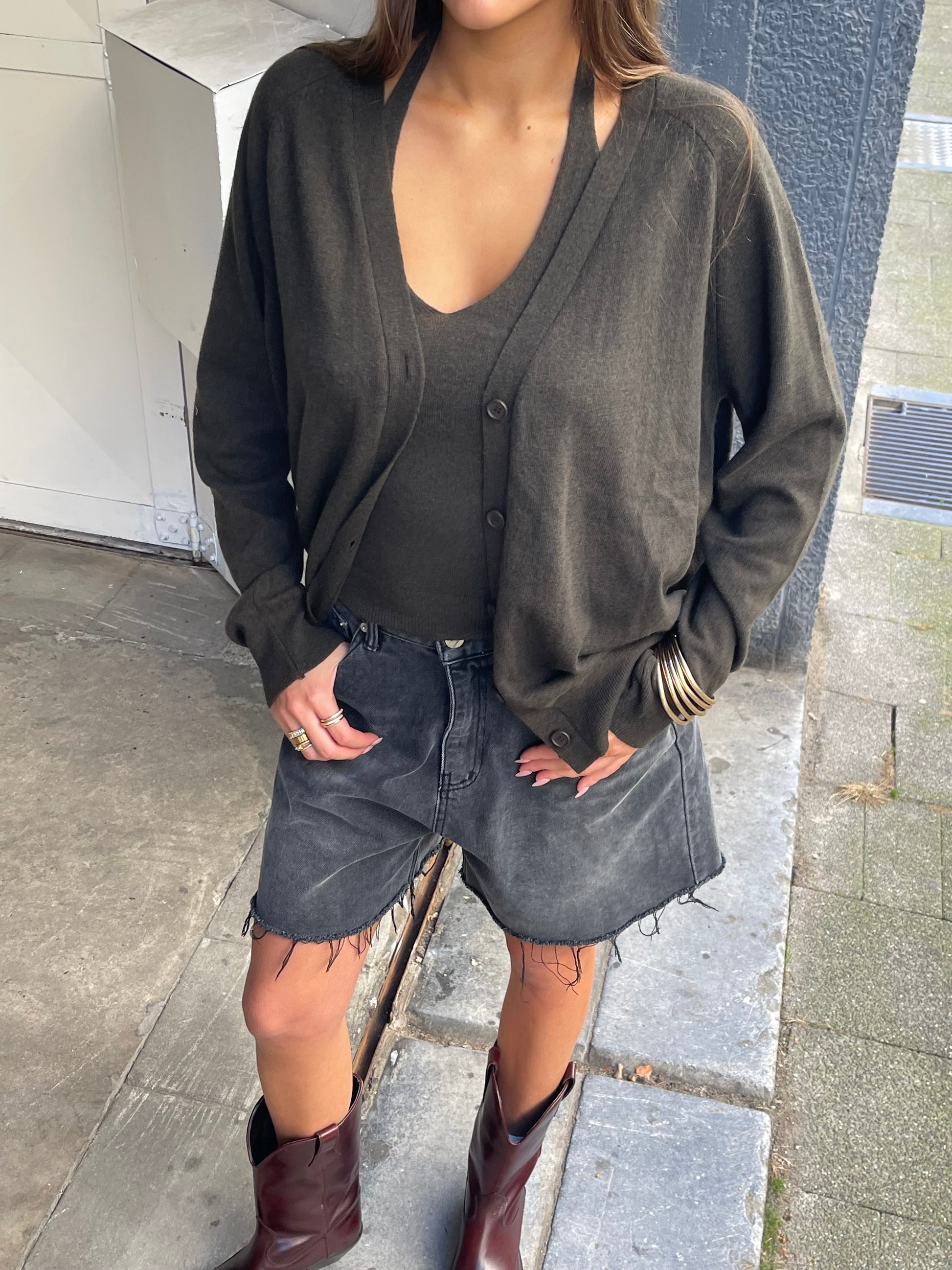 Knitted Buttoned Oversized Cardigan Khaki