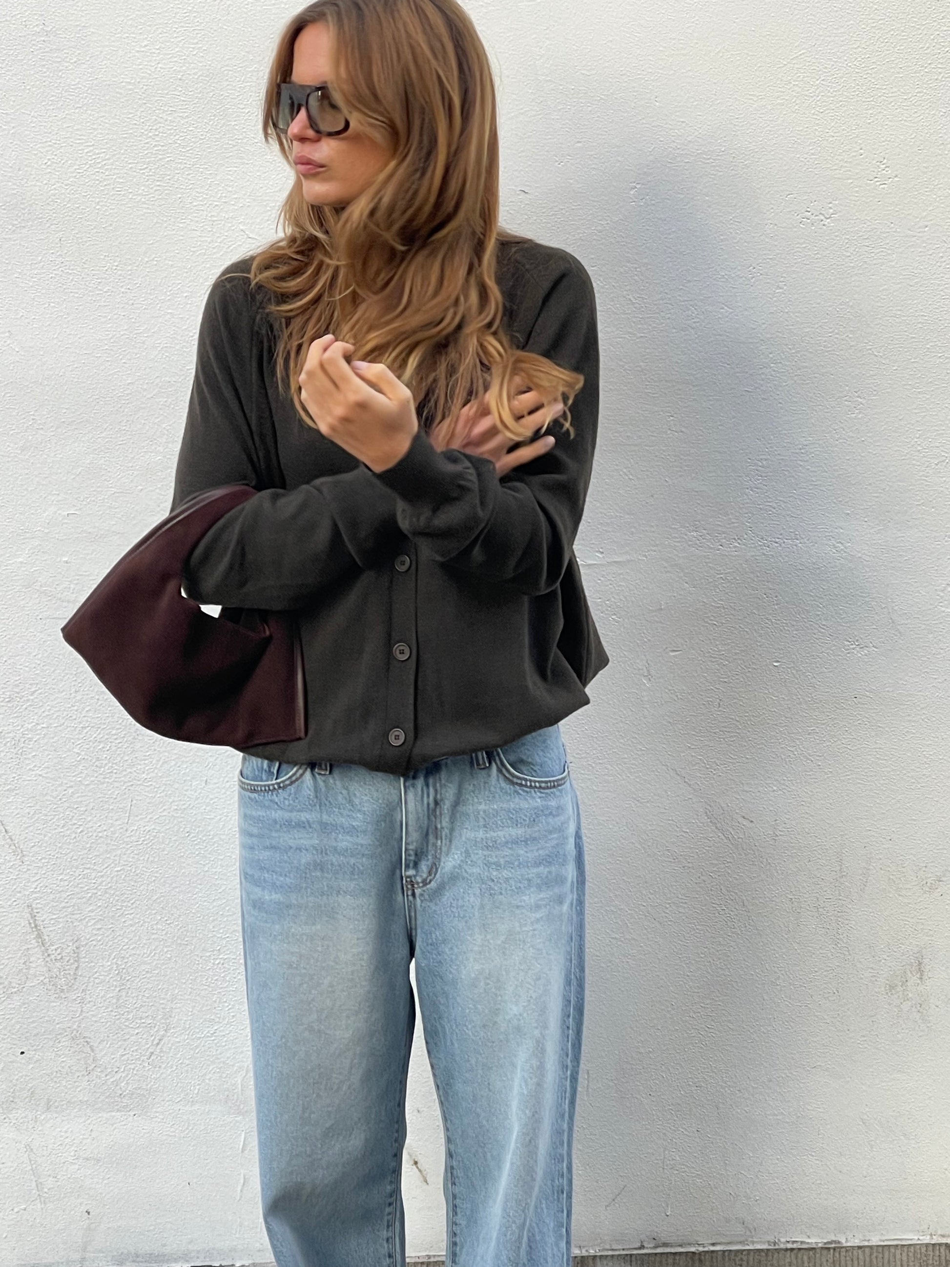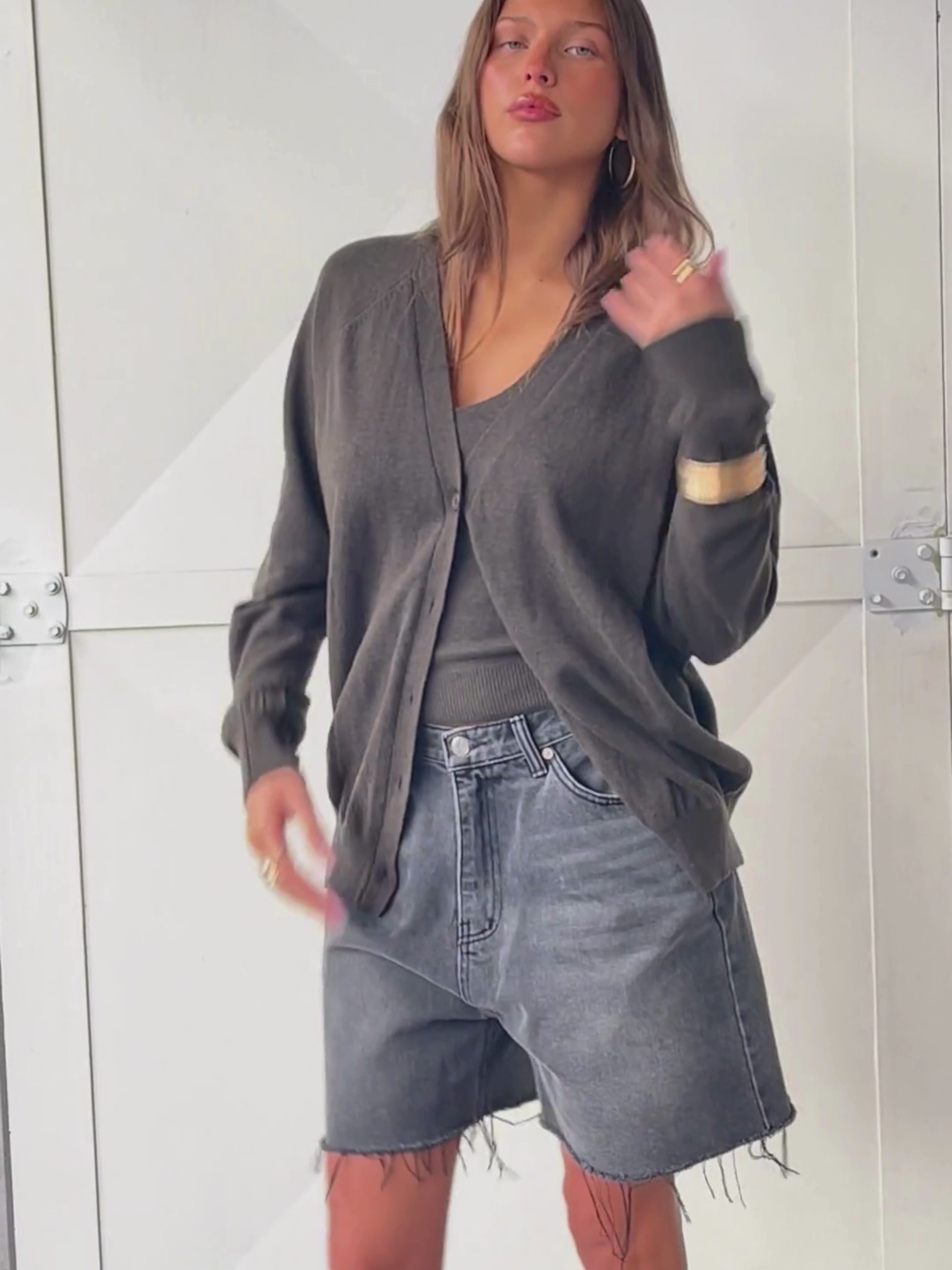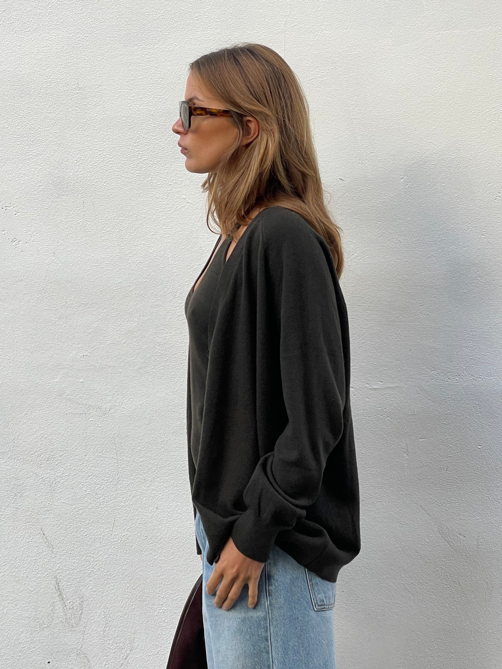 Knitted Buttoned Oversized Cardigan Khaki