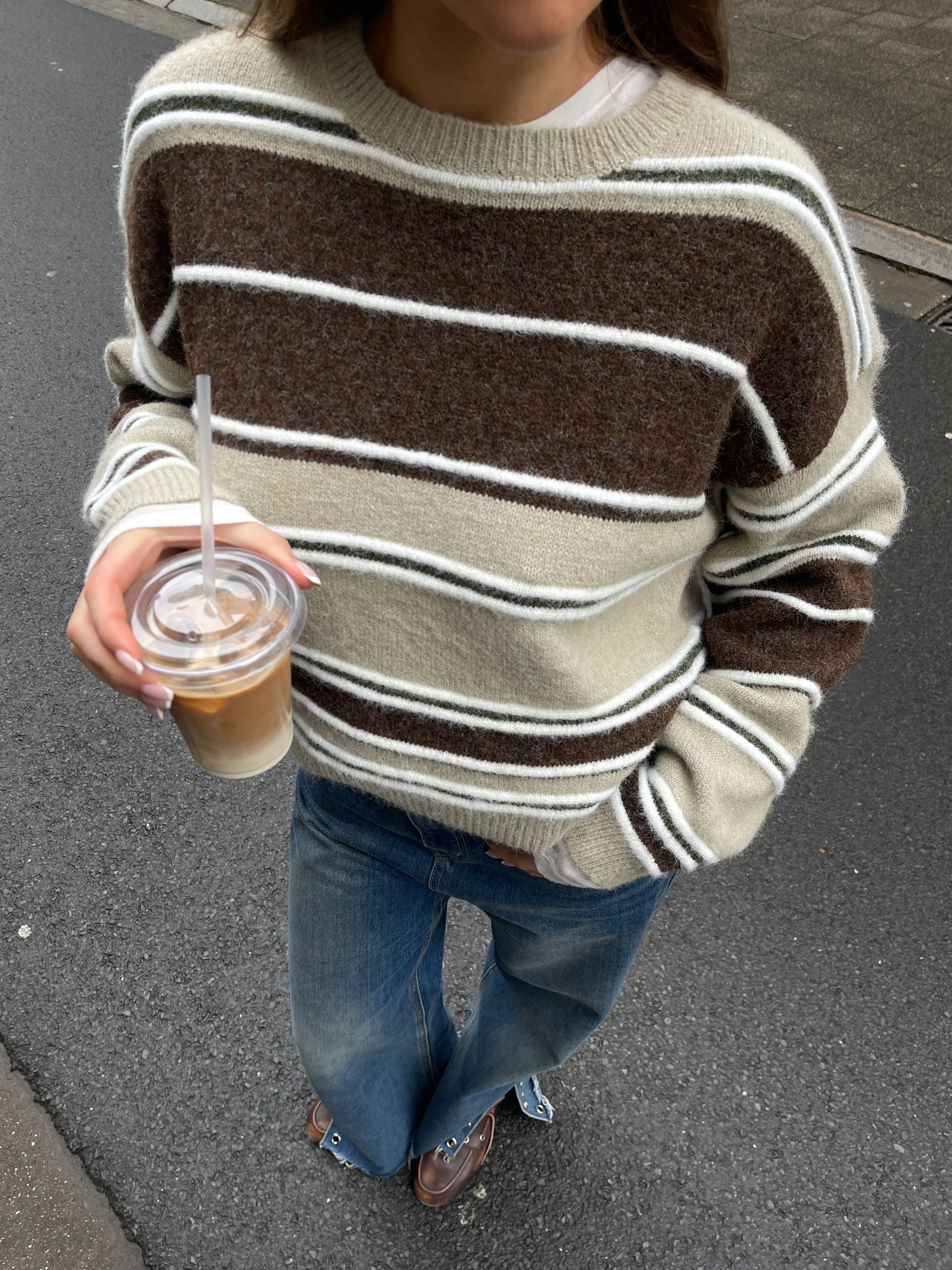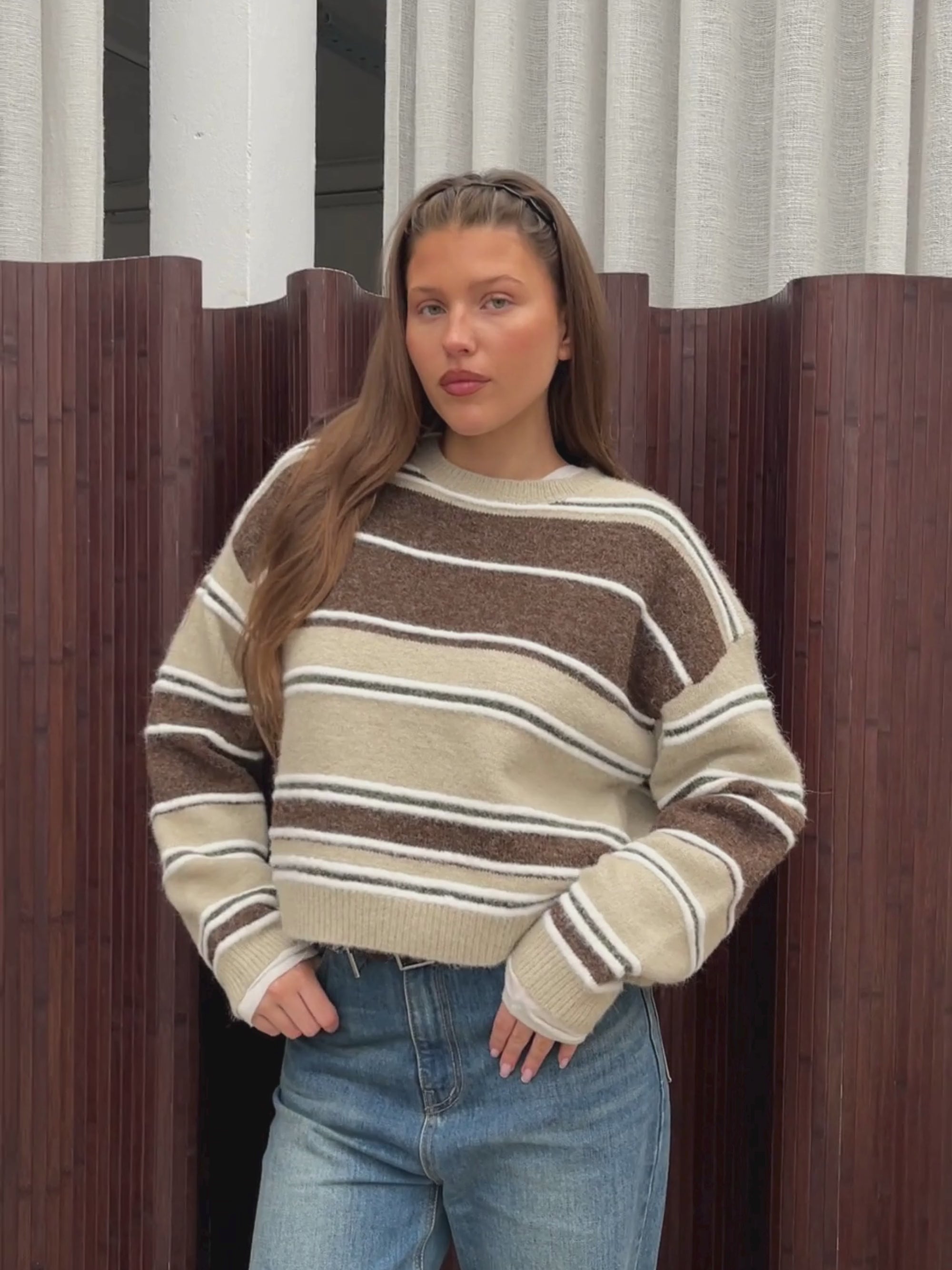Two Coloured Striped Loose Knit Beige