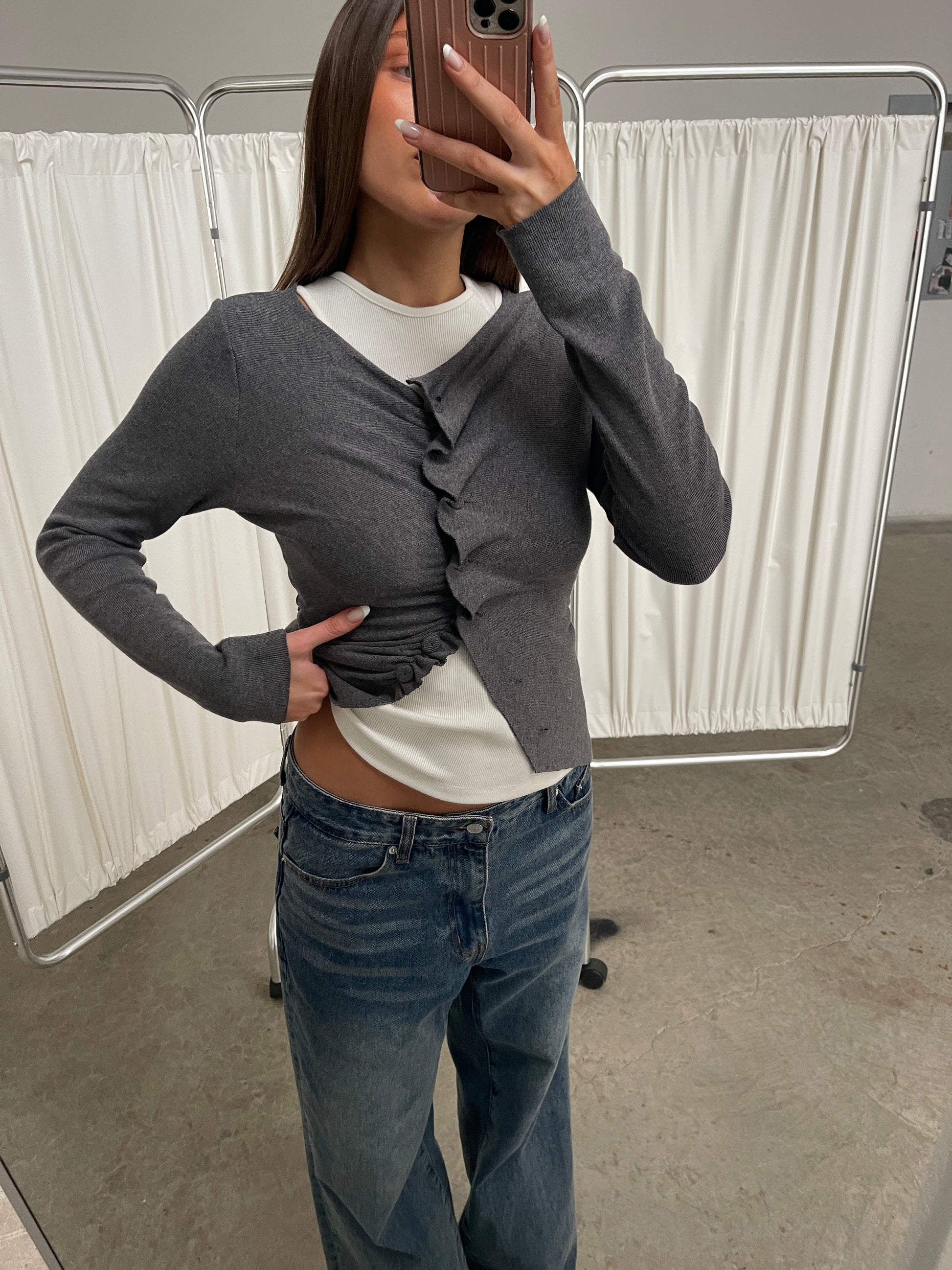Wavy Front Closure Cardigan Charcoal