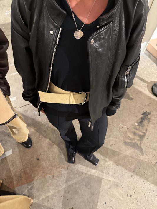 After a week of dust, denim, and rodeo chaos in Antwerp, the pieces you loved at our pop-up are finally coming online. Expect soft suedes, oversized checks, easy knits, and denim that feels lived-in from the first wear. Belts — wide, studded, essential — tie every look together, while relaxed silhouettes keep things effortless and wearable.