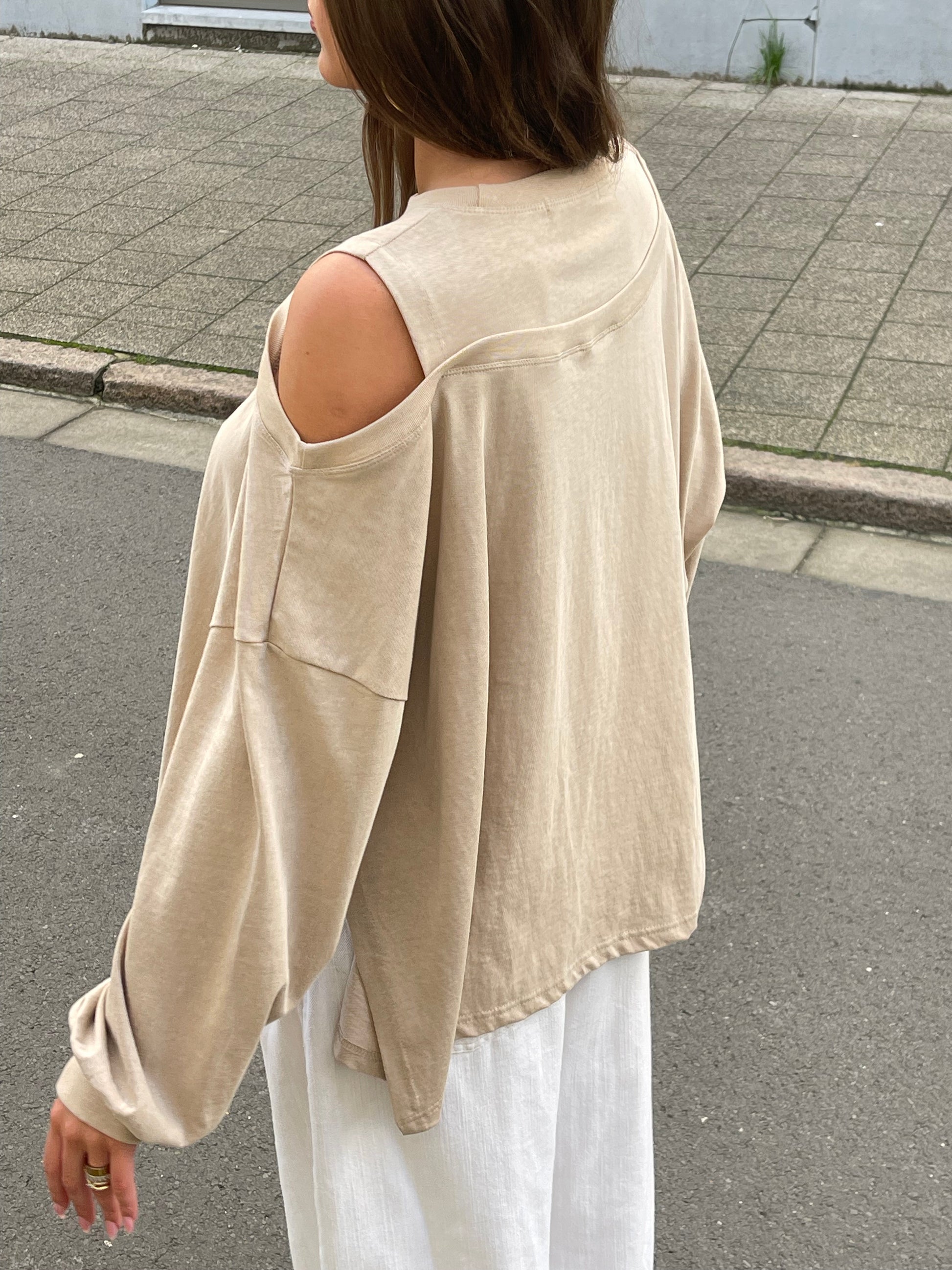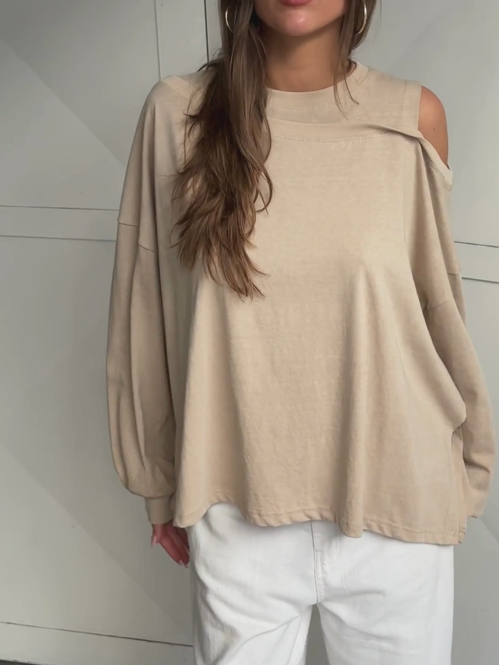 Asymmetric Cut Out Shoulder Longsleeve Tee Coffee