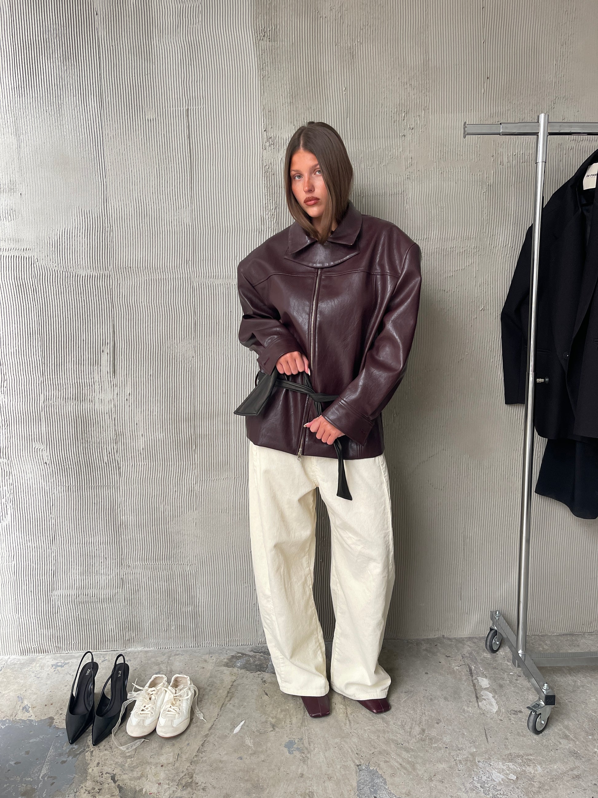 Contrast Belted Jacket Burgundy