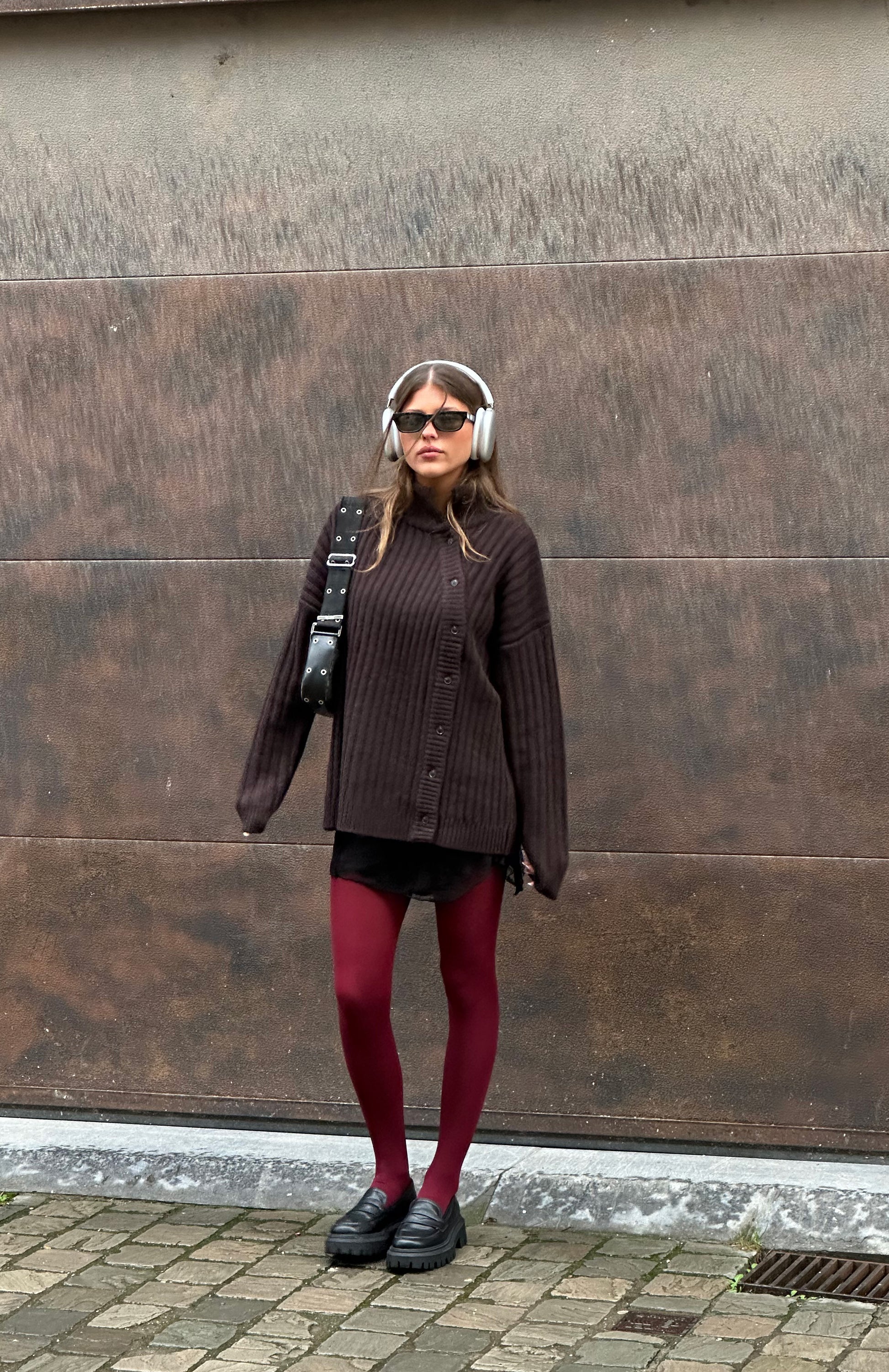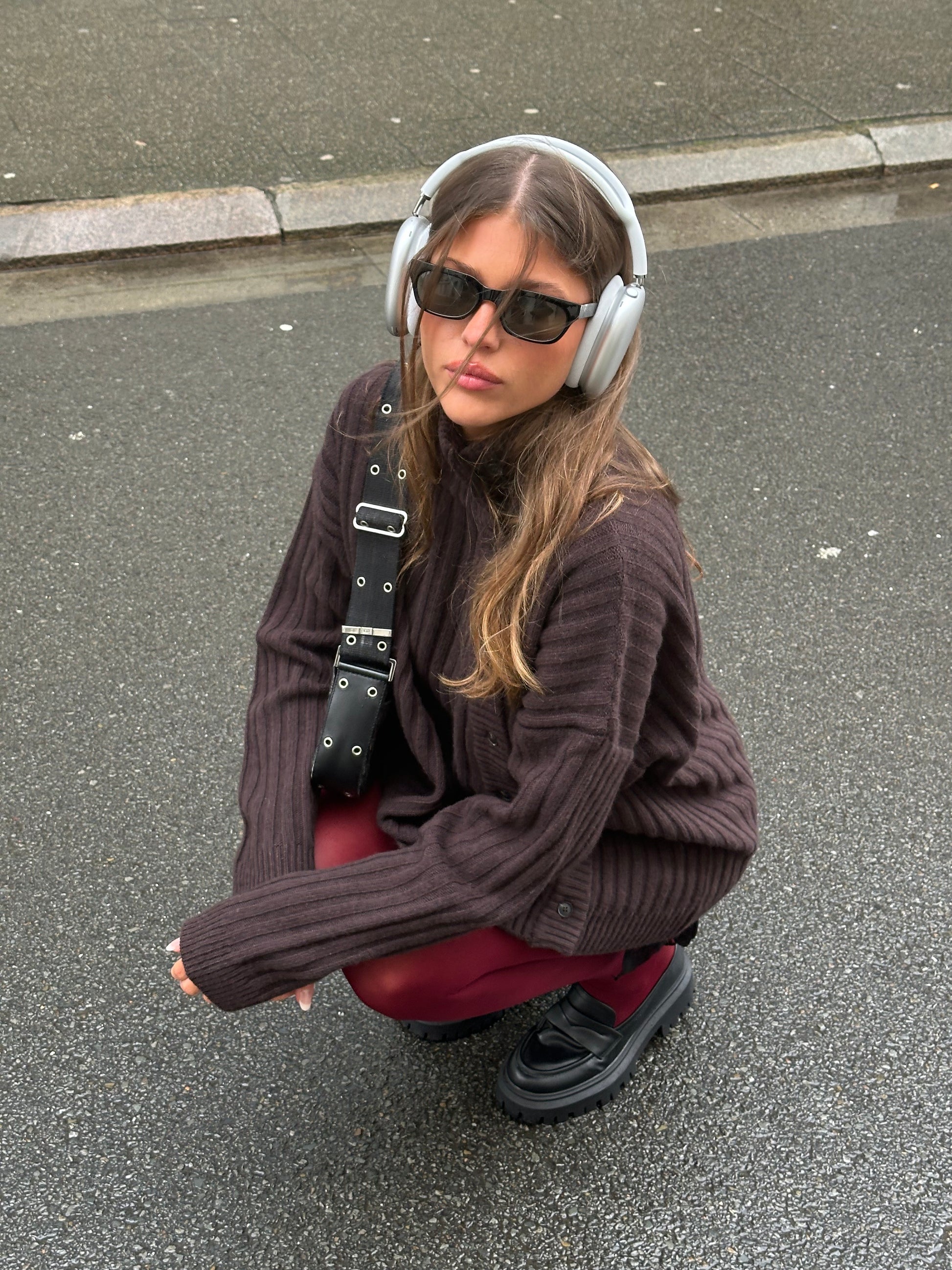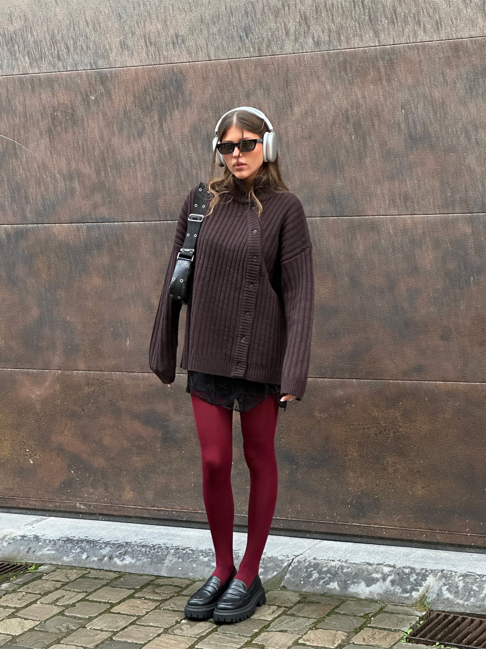 Buttoned Turtleneck Cashmere Blend Knit Brown