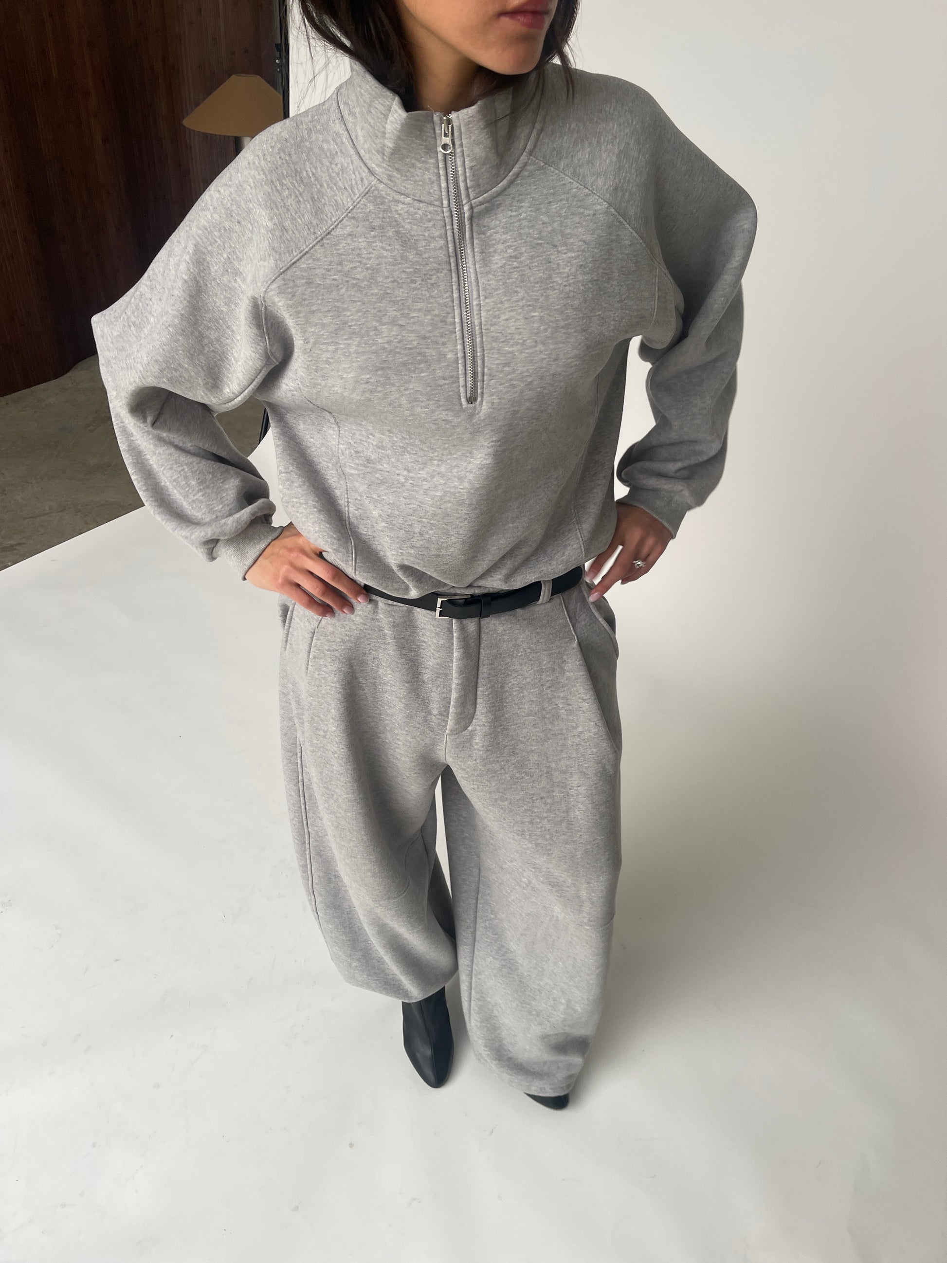 Wear it with our Fleeced Barrel Fit Jogger Pants Grey and our Headband Grey