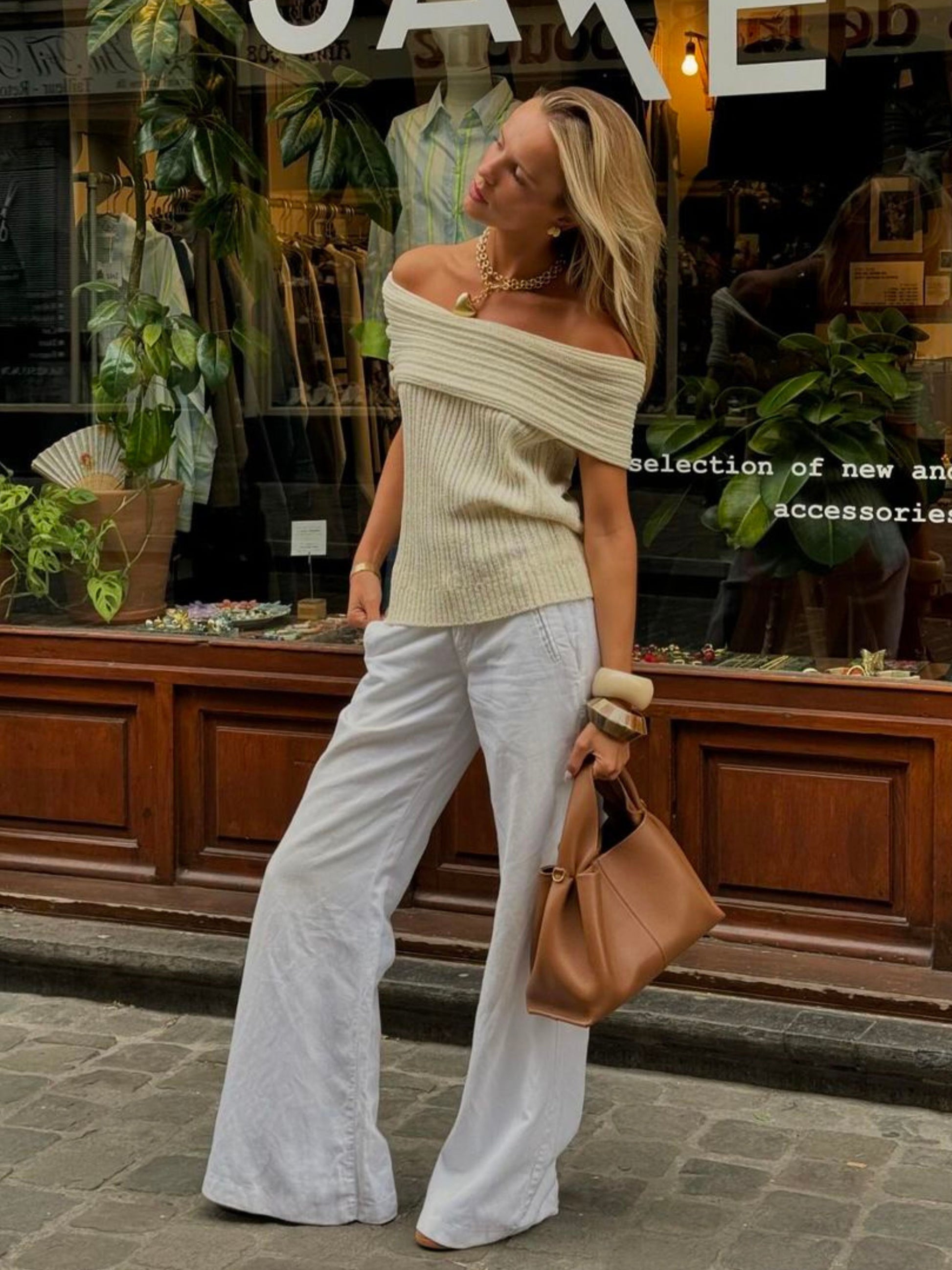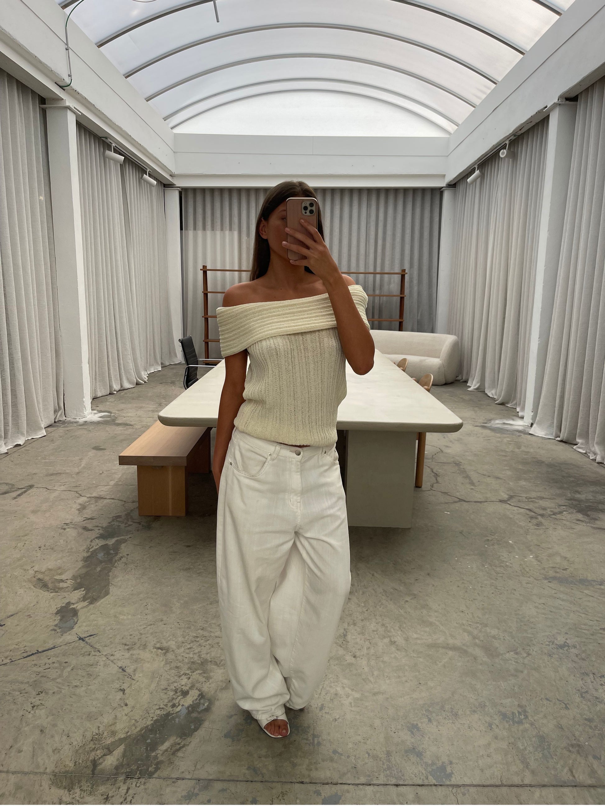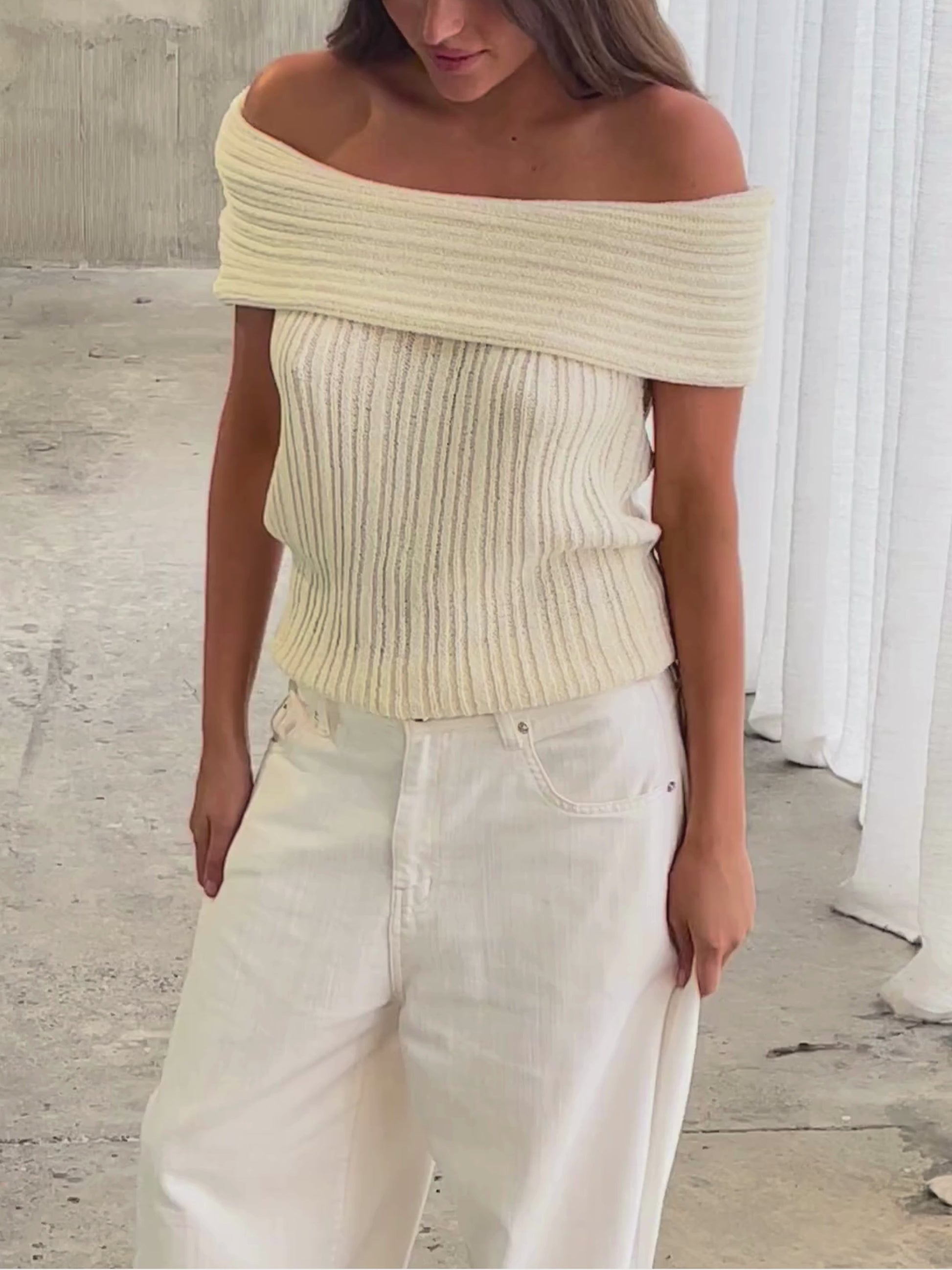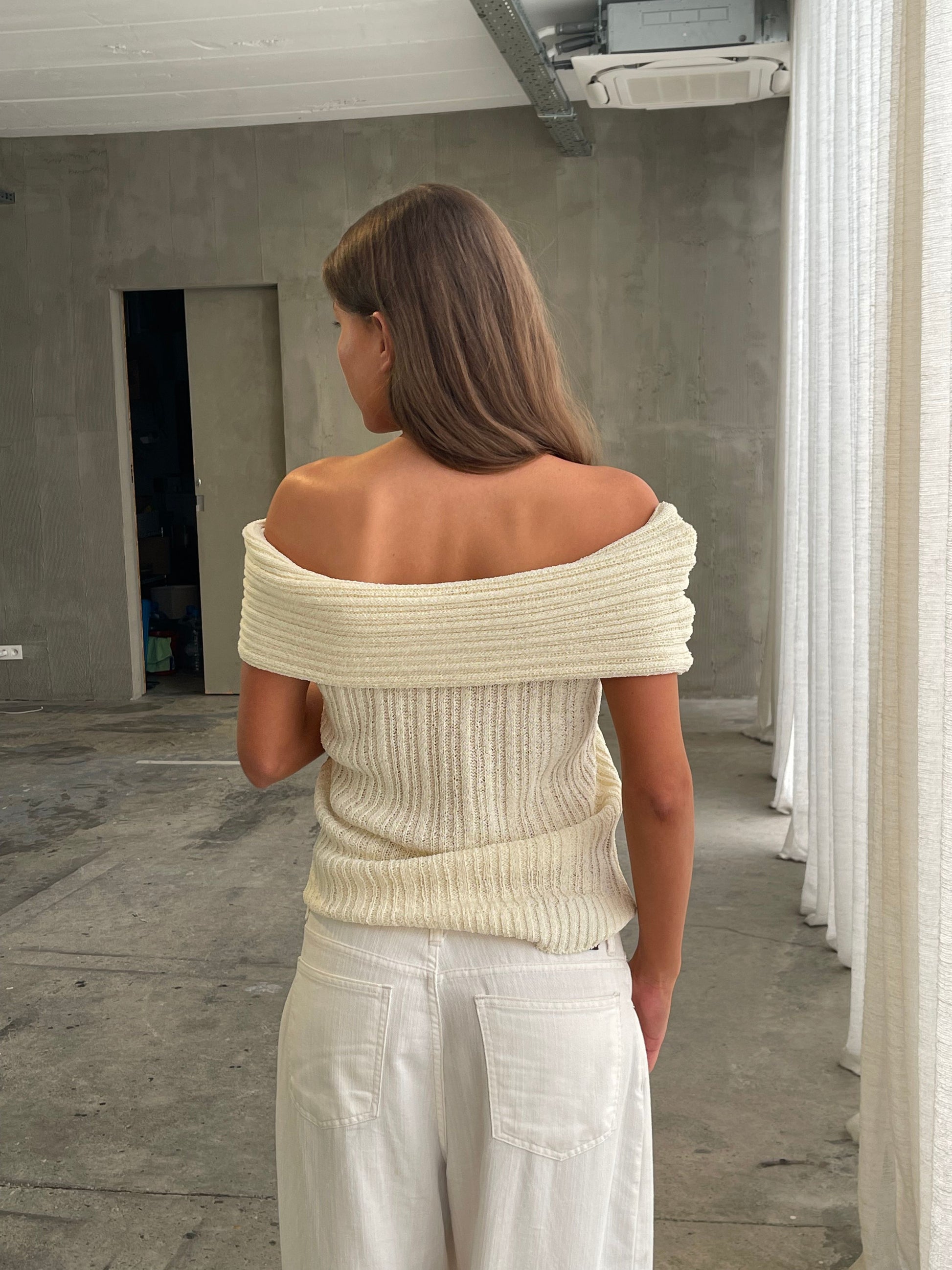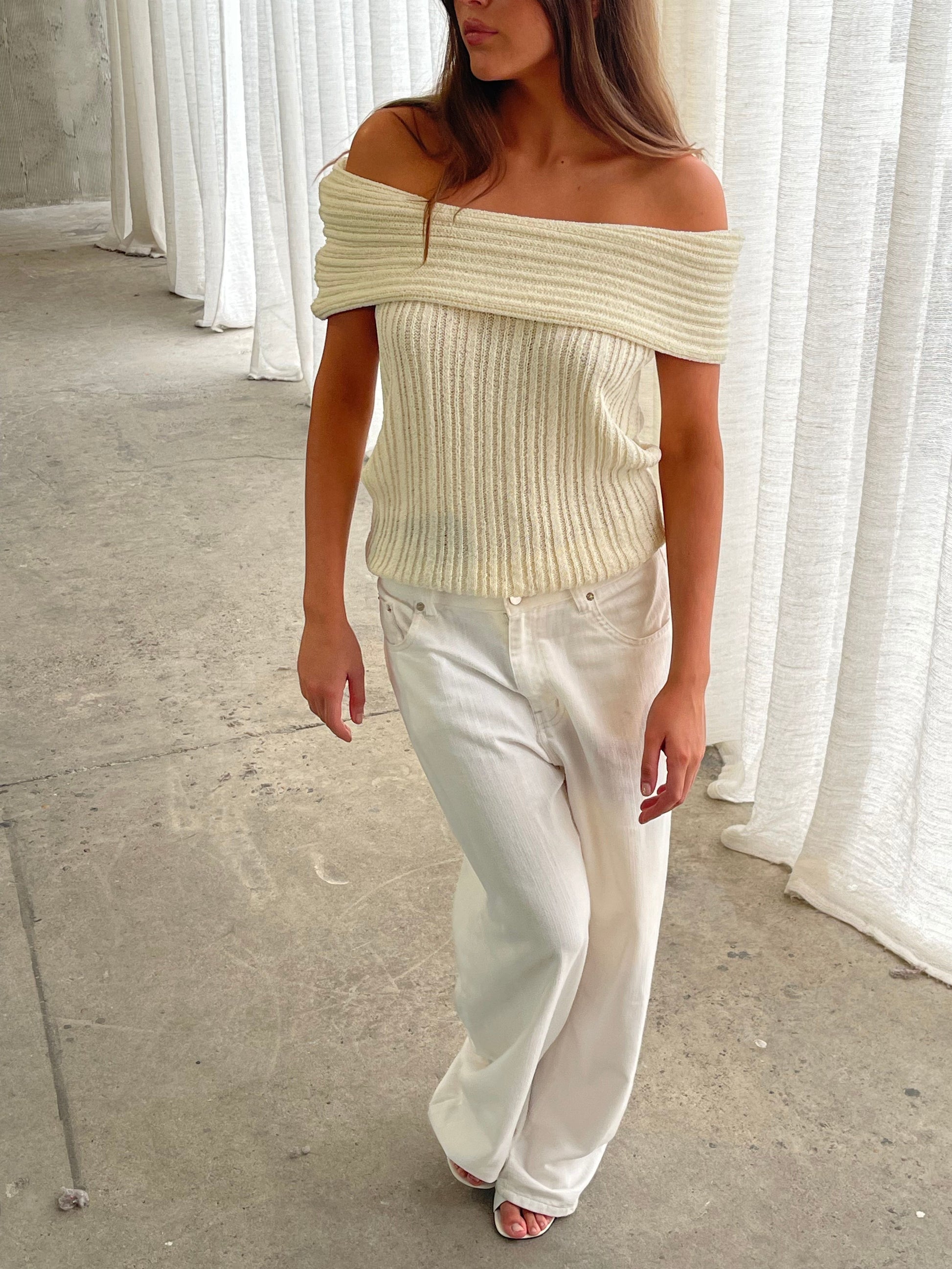 Off Shoulder Knitted Top Ivory