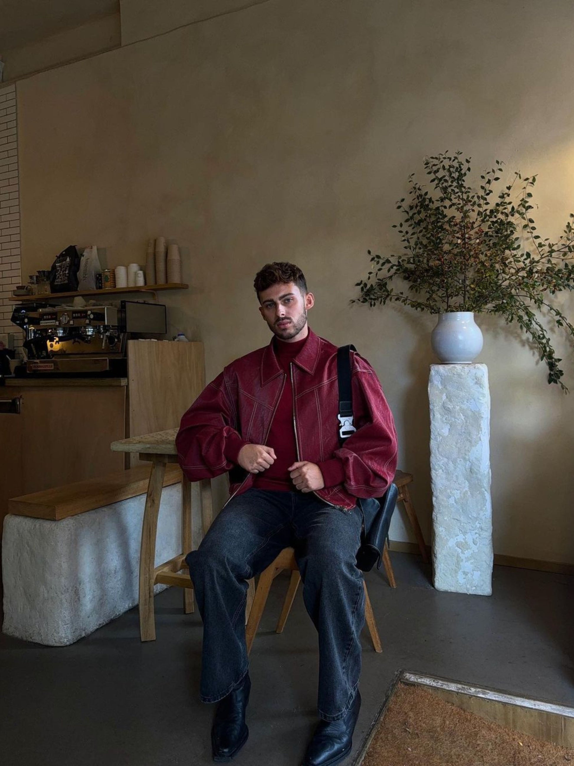 Oversized Contrast Stitch Jacket Red