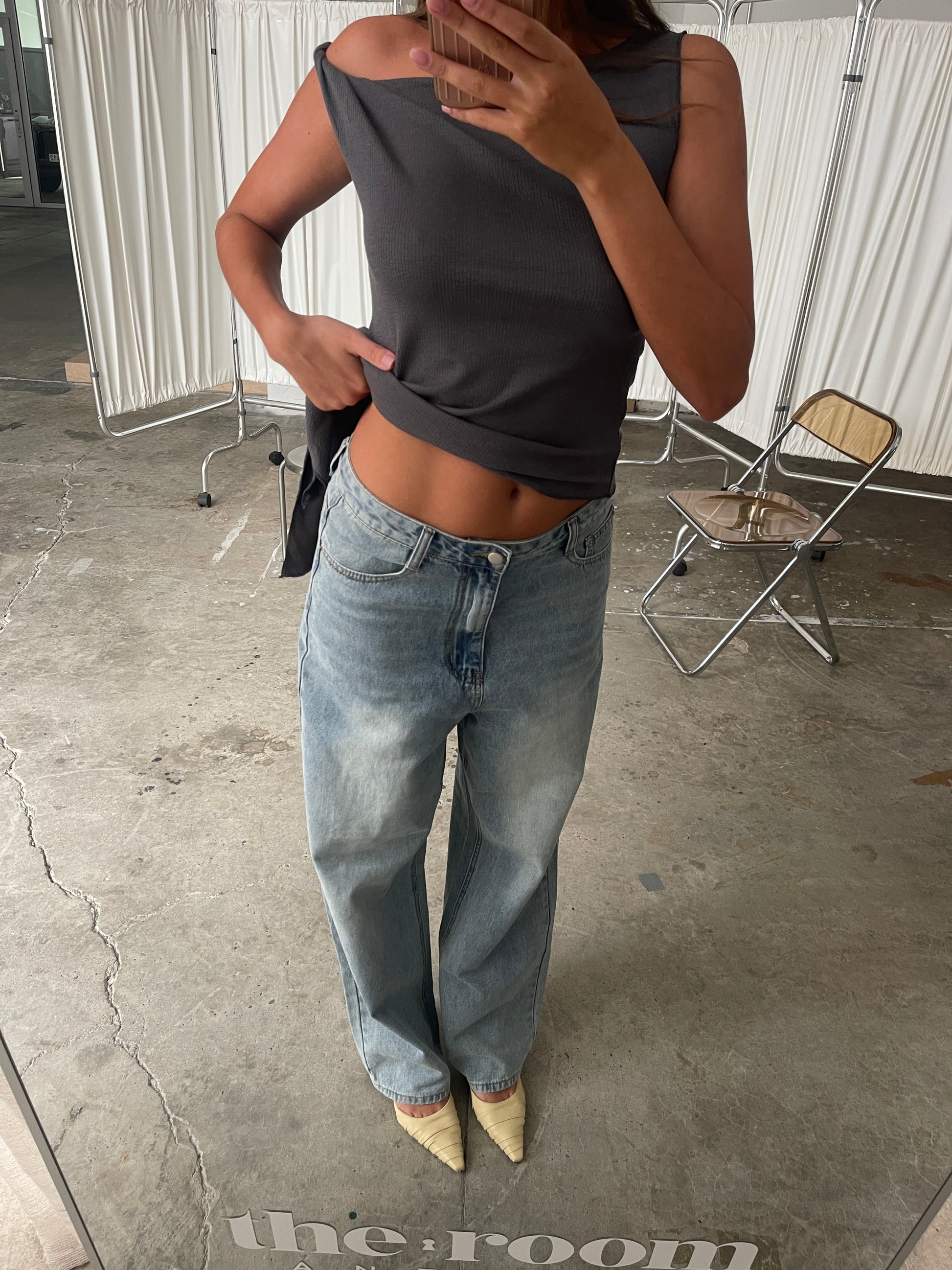 Wear it with our Asymmetric Off Shoulder Top Charcoal