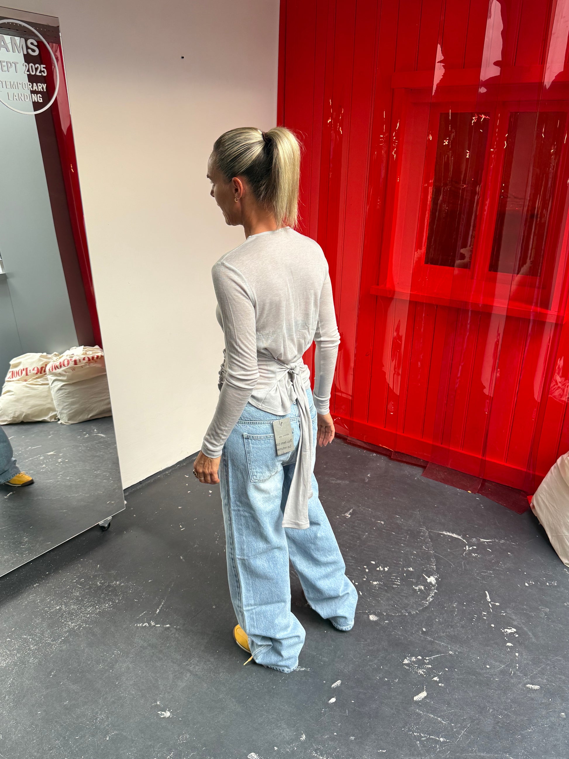 Sheer Button Detail Longsleeve Grey